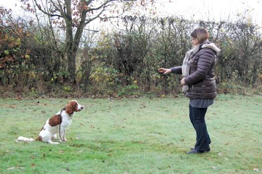 | Diane with her Welsh springer, Toby. Sit and stay kingpin to all gundog training. | |