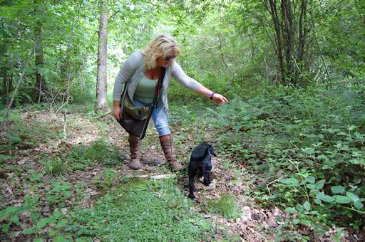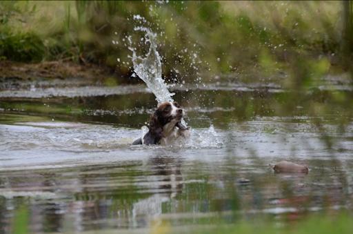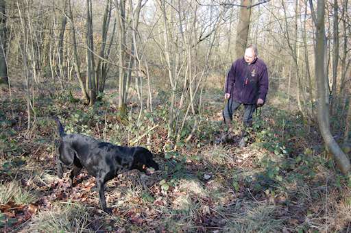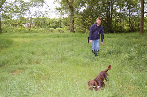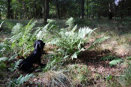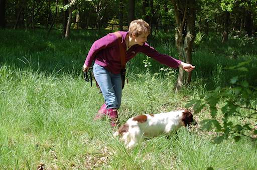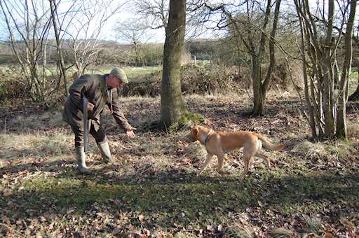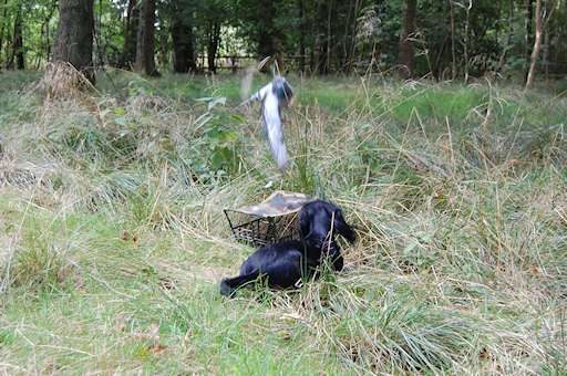 Spaniel flushes a pigeon in cover. (Look carefully top right of frame) |