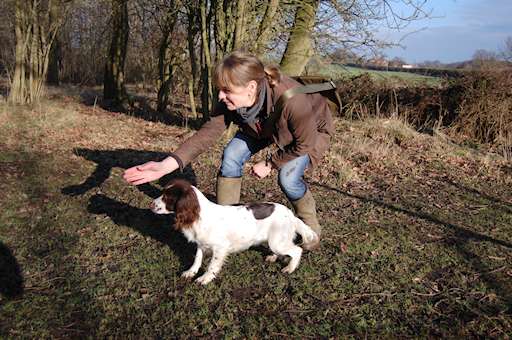 | Cocker spaniel flushing pigeon in light cover: Teaching the dog not to chase birds |