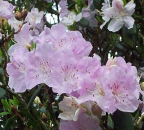 | Rhododendrons in flower with vivid colours and subtle shades. |