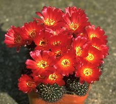 2 year old Rebutia seedlings though still quite small and in 2" pots will flower freely. Teesside branch of the BCS has several members who enjoy seed raising and grow plants for sale to the public to boost branch funds.
