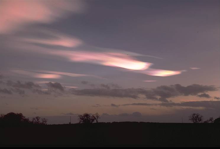 On 16th February 1996 we in Britain were treated to a spectacular display of nacreous clouds - sufficiently attention grabbing to make the national news. They were seen over a wide area from Edinburgh in Scotland right down to Cambridge and London in the south of England. I saw them for about an hour after local sunset, waiting for it to go dark (latitude 54 N), but it proved too windy for astronomy.