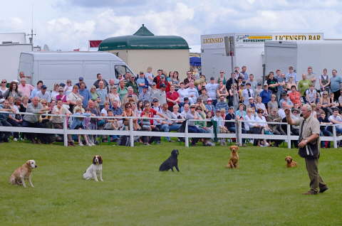 A fair sized crowd gathered to watch the Mountgrace Gundogs display at the Great Yorkshire Show. The weather was kind this year fine and dry but not too hot and we were not rained off like last year. The dogs as ever were very attentive as they were put through their paces. Towards the end of the display we had some audience participation for the little ones. Later at the static display we were also kept busy. |